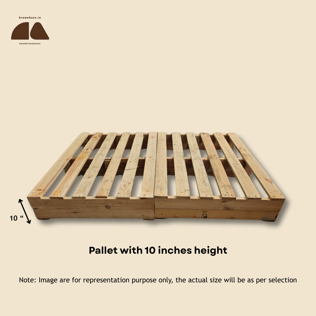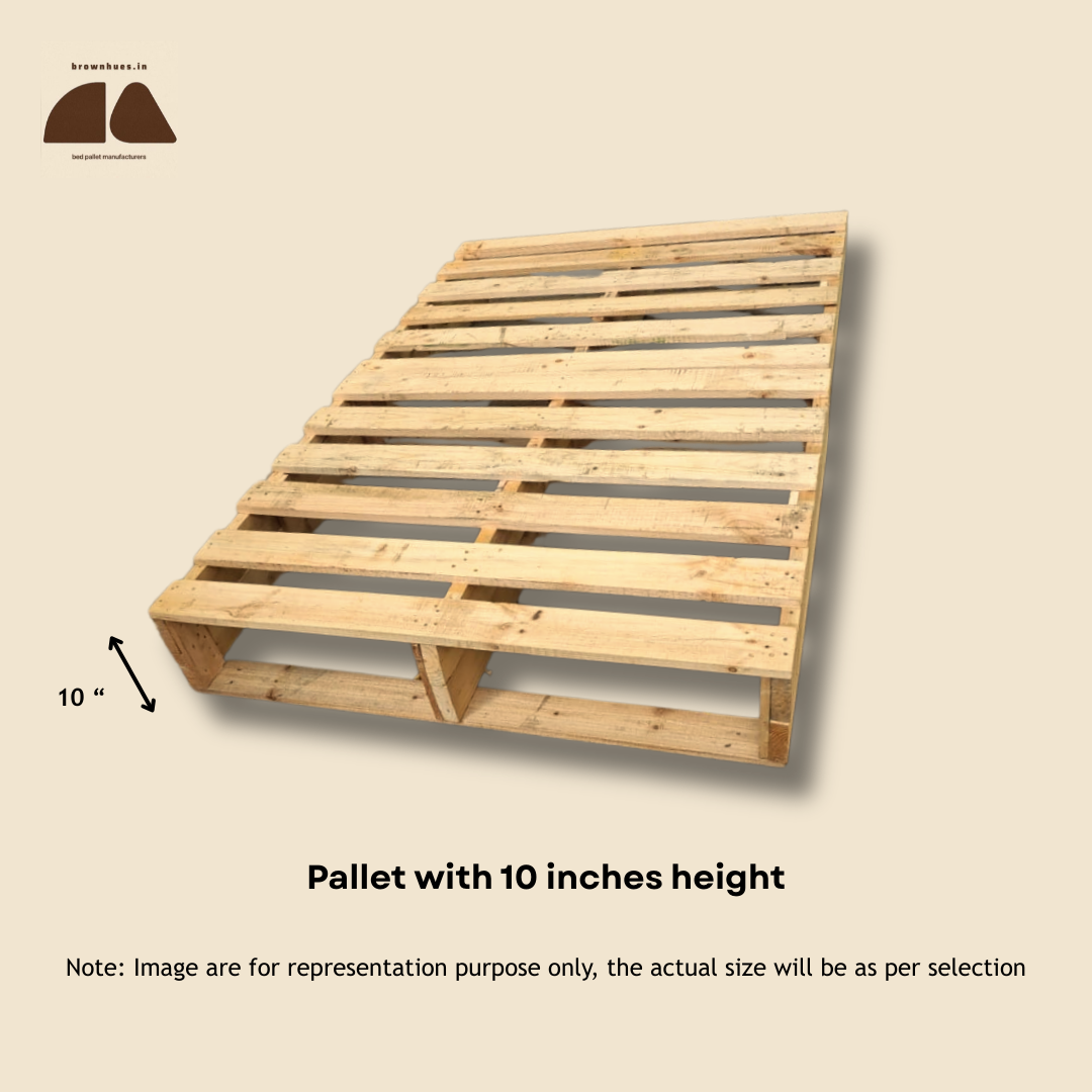 Experience the perfect blend of natural charm and sturdy simplicity with our wooden bed pallets, designed to elevate your bedroom’s aesthetic while providing unbeatable support. Crafted from pinewood that is termite-treated and free from harmful chemicals. Its sleek, slatted design with a minimal headboard adds a modern rustic vibe that complements any decor style.